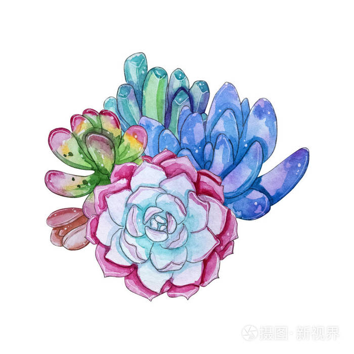 水彩手绘肉质植物组成 水彩剪贴画 白色背景上孤立的个别花 适合你的项目 封面 壁纸 图案 礼品纸 婚礼照片 正版商用图片1845qu 摄图新视界