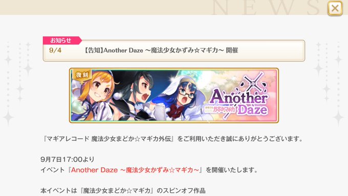 マギアレコード 魔法少女まどか マギカ外伝 9月7日17 00より イベントおよび期間限定ガチャ Another Daze 魔法少女かずみ マギカ を開催 他 ゲームハック